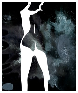 to give an ethereal backdrop beneath a contrasting image of the female form. Previously sold through